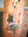 Even though it decided to rain a bit on us during the day the area doesn't see tons of rain, which means the holds tend to get pretty caked with chalk, so the team went to work with some serious hold scrubbing.